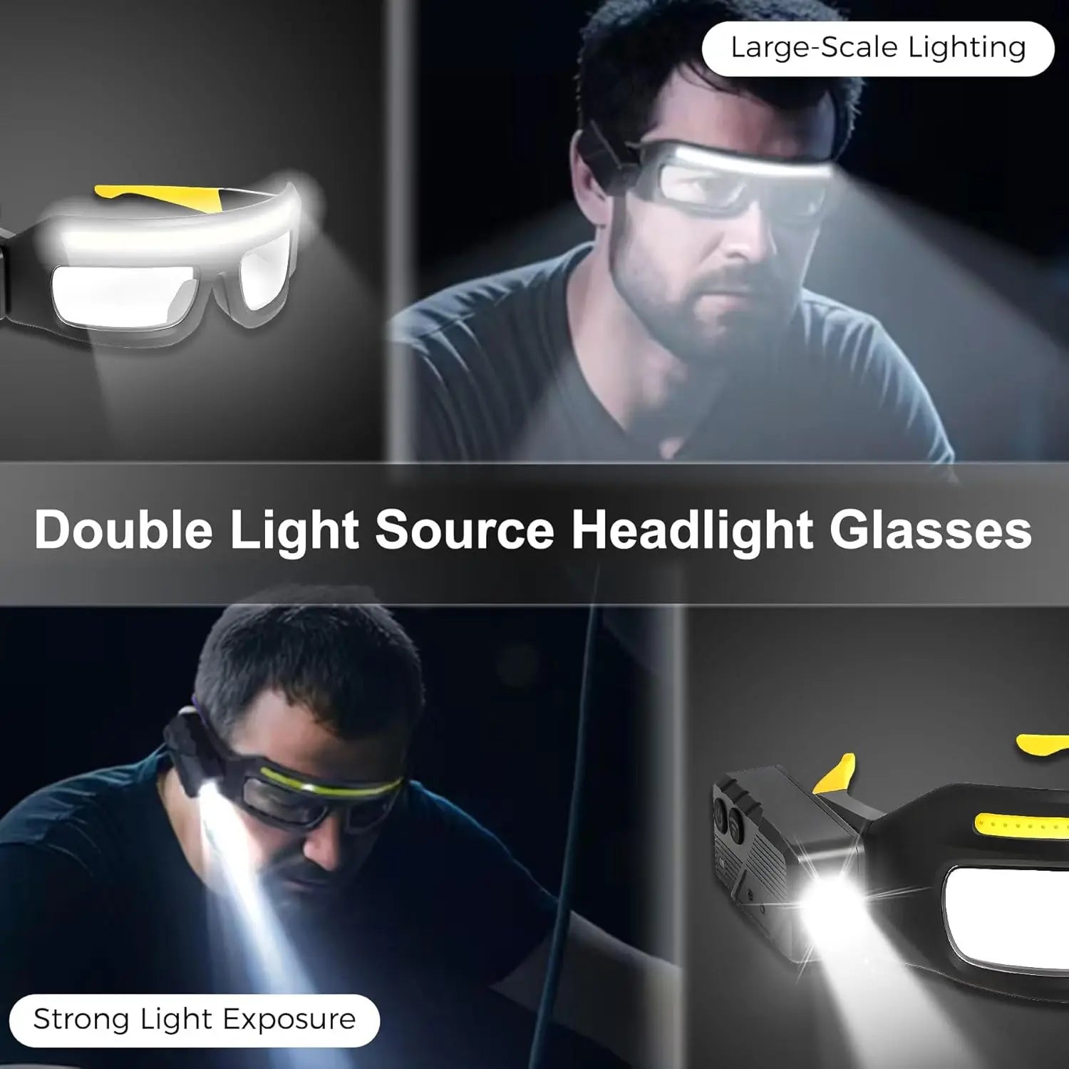 LED glasses, rechargeable headlamp glasses with motion sensors and touch controls, suitable for running, camping, fishing.